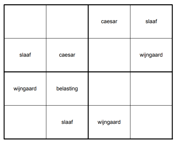 In elk vak mag het woord maar 1 keer voorkomen. Ook in een lijn verticaal (van boven naar beneden) en horizontaal (van links naar rechts) mag een woord maar een keer voorkomen. En uiteraard is er ook nu weer een makkelijke en moeilijke versie.