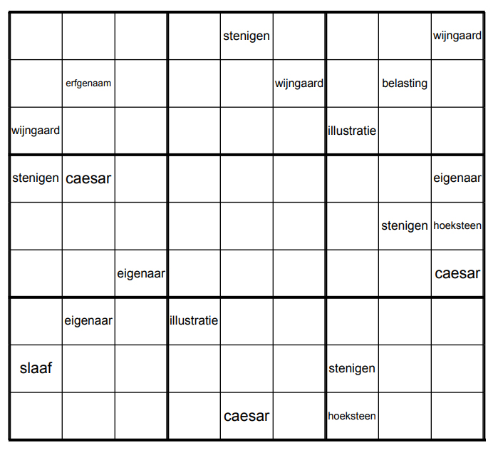 Vandaag staat op het programma een Woord Sudoku. Je kent de versie wel met cijfers. Dit is hetzelfde maar dan met woorden.